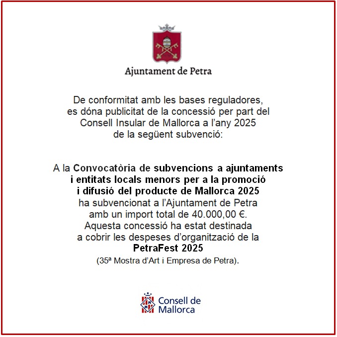 Convocatòria de subvencions a Ajuntaments i entitats locals menors per a la promoció i difusió del producte de Mallorca 2025